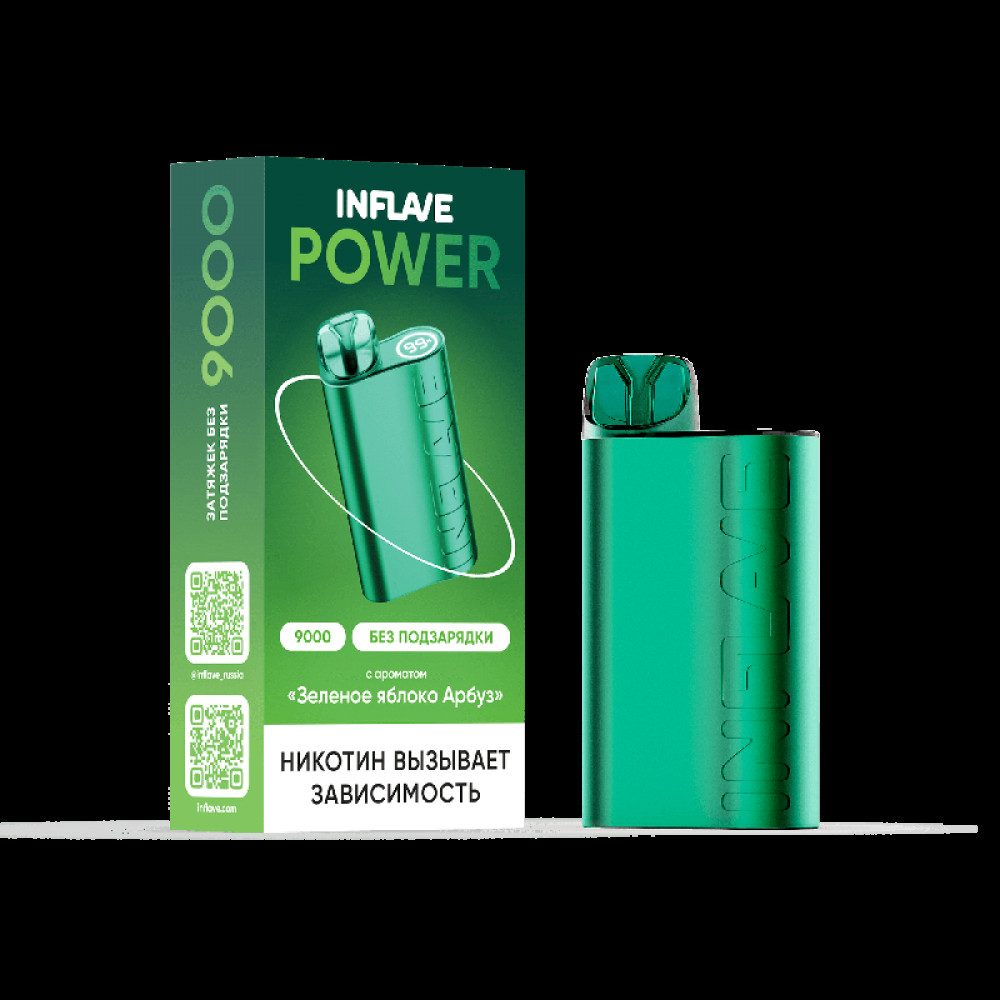 Электронная сигарета INFLAVE POWER 9000 затяжек Зеленое Яблоко Арбуз - купить в Каспийске